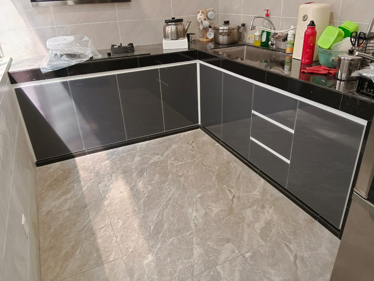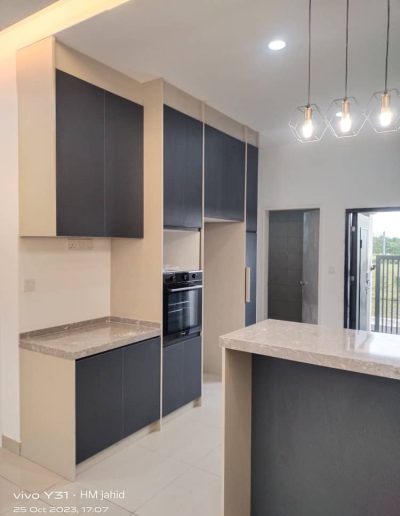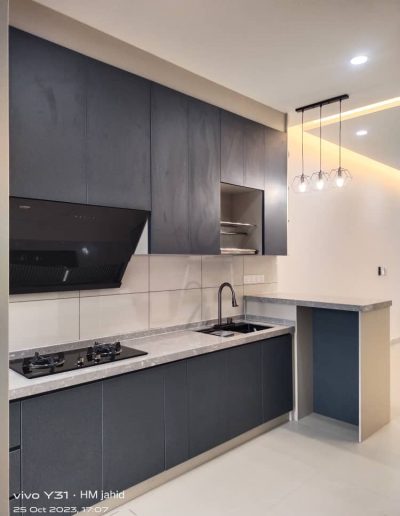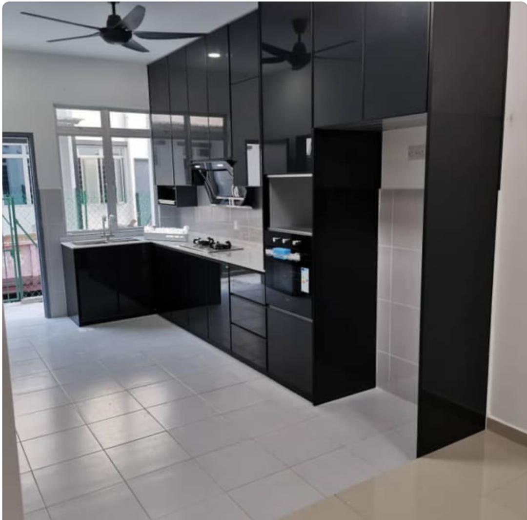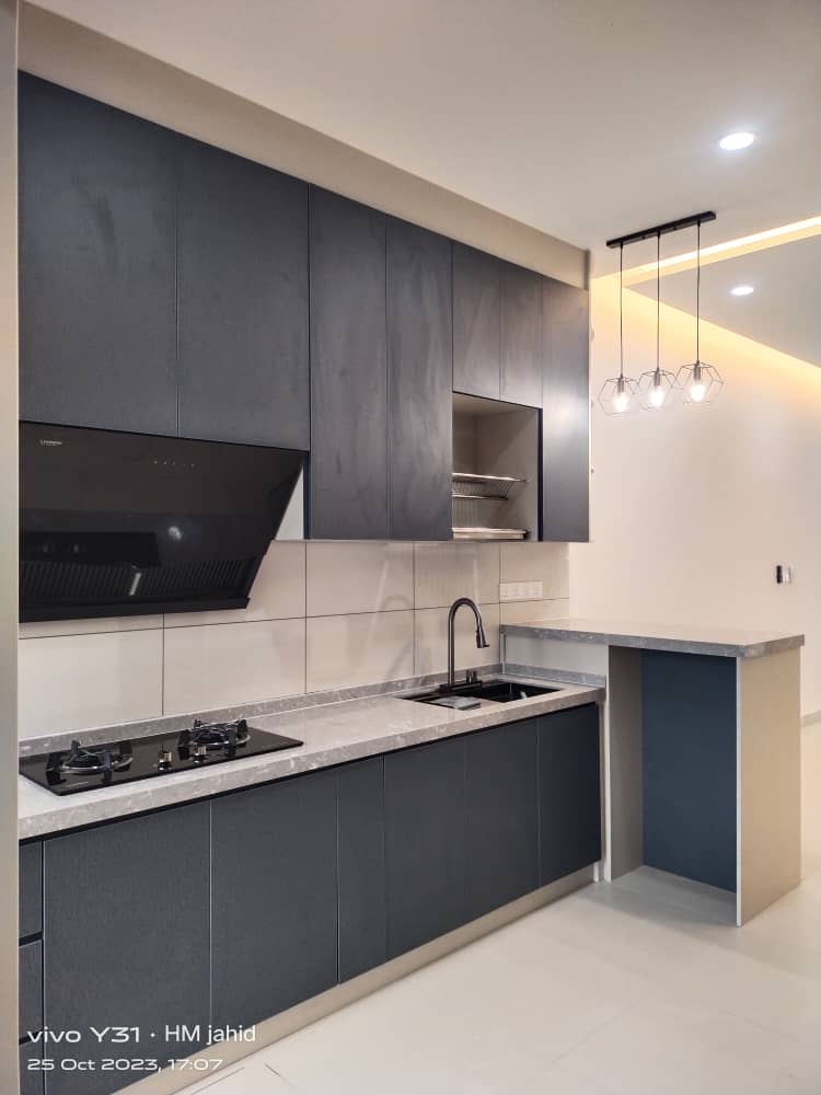The kitchen cabinets exude a sleek sophistication, seamlessly blending modern aesthetics with practical functionality