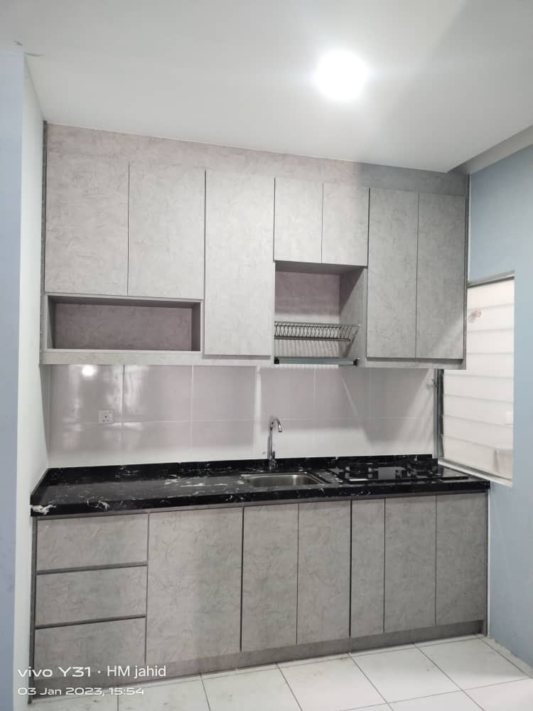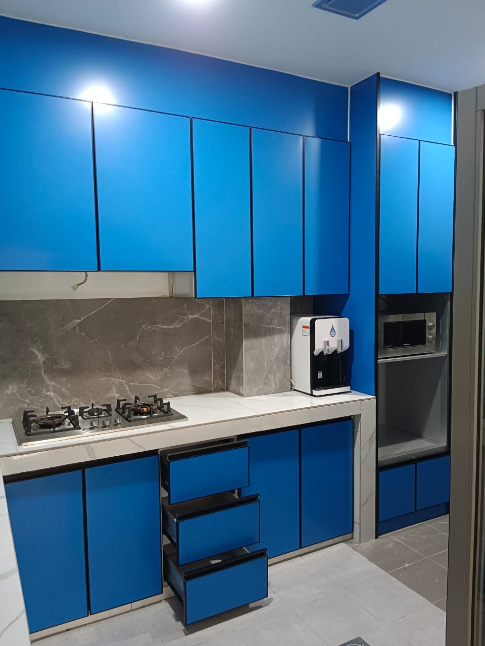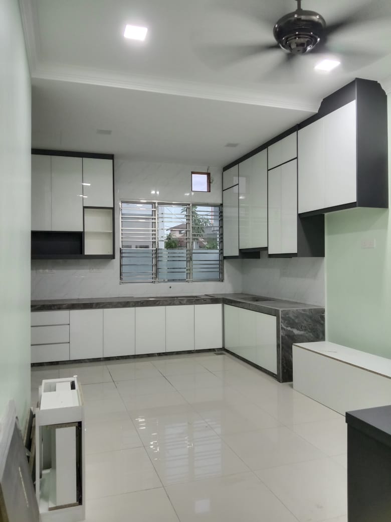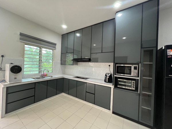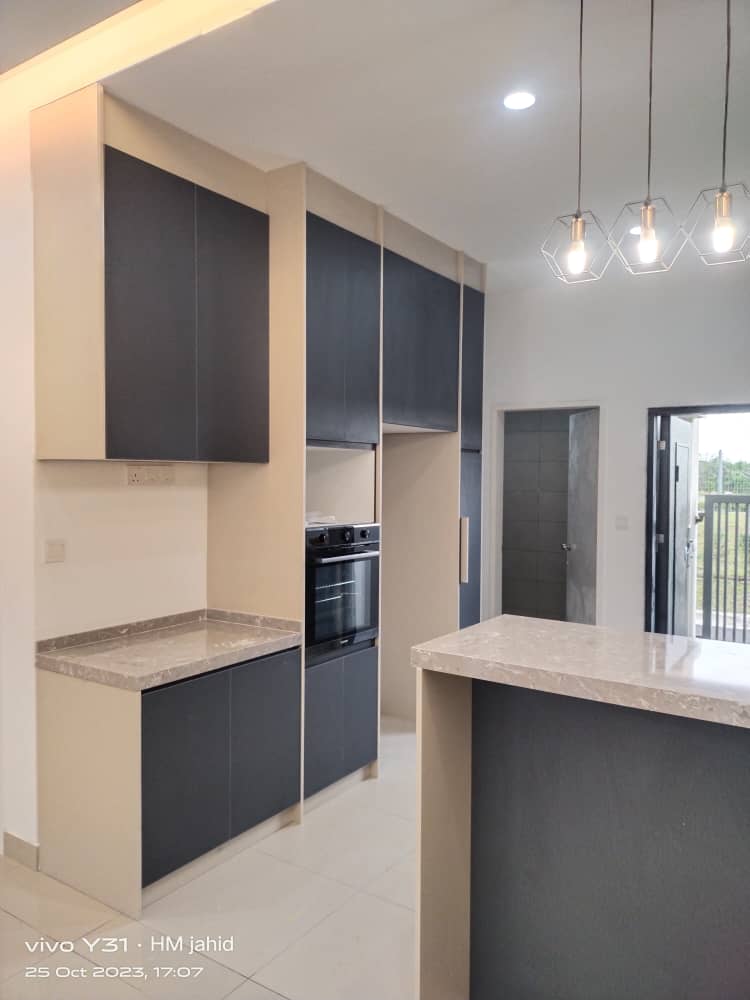 The kitchen cabinets exude a sleek sophistication, seamlessly blending modern aesthetics with practical functionality
